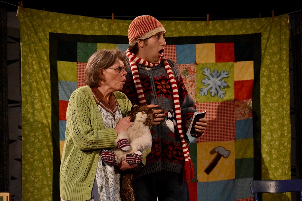 The actors deserve a lot of the credit for bringing these characters to such vivid life with nuance and hilarity and heart. Robins does wonders at puppeteering the cat and infusing it with personality. Campbell is delightfully grumpy as Dad; he may bumble around the house like a curmudgeon, but his love for his family still shines through. MacRae-Ziss is so heartfelt as Mom, we see how lonesome she is for her daughter and how stressful, but also rewarding, it can be to be part of the “Sandwich Generation,” as she worries and cares about Gramma and Mary Rose at the same time. Mom manages to be sort of an “Everywoman” here, but MacRae-Ziss also finds ways of giving this Mom her own specificity in how she relates and responds to the various calamities that arise in her household. Mauralea Austin shines brightly as Gramma; she is the comedic heart of the play and she’s “given’er” all the boisterousness she has to great effect. There is also a really lovely moment when Austin’s Gramma has a chance to say something important to Mary Rose without being overheard, which reminded me so much of something my own grandmother might have said to me in confidence. We also get a strong sense of the challenges that Gramma faces in reaching this stage of life: she is restricted and monitored by her children, her body doesn’t allow her to do the things she once enjoyed and she misses Mary Rose terribly as well.