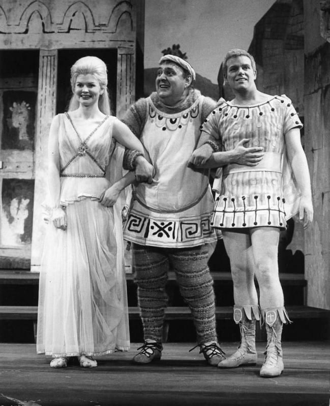 What I needed to do to fix the show was write “Comedy Tonight.” It would be better if I could go back and do it again. But, actually, we opened out of town and George Abbott was the director and he was considered at that time to be the “King of Comedy” and the show was a huge disaster. And George Abbott was also a play doctor in those days, where if your show wasn’t working when it played out of town, you’d call in George Abbott and he would save it for you. Well, for Forum, the audience was not having a good time even though we thought that the show was hilarious and we had good actors. So, one day George said to us, “Fellas, I don’t know what to do, you better call in George Abbott.” And we did, and his name was Jerome Robbins. He said that the show needed an opener… one that you could hum (pause) I’ve heard that a lot… and that it needed to establish that the show the audience was about to see was a low comedy farce. And he said, “No jokes. Let me do the jokes.” And so I wrote “Comedy Tonight,” which basically says the same idea over and over, but after that, Forum became an overnight hit and the way that Jerry staged “Comedy Tonight” was brilliant.