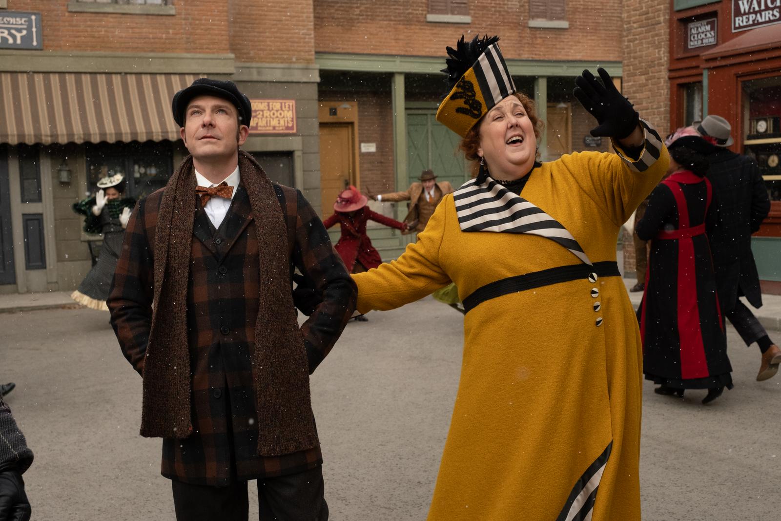 Thomas Craig as Inspector Brackenreid has the big “Razzle Dazzle” number named after his signature catchphrase “Bloody Hell,” which includes some great dancing, choreographed by Tim French. Arwen Humphreys, always so endearingly smug as Margaret Brackenreid, has a really cute set-up for her husband’s song. Carli also does a beautiful job of interweaving the iconic Murdoch Mysteries theme throughout the episode.