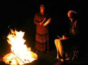 The etymology of the word “theatre,” when taken from the Greek “théatron” is “a place for viewing,” but this week at Ross Creek Centre for the Arts in Elapultiek, which is staged at dusk with the audience sitting around a campfire, the emphasis is much more on this being a listening place, or “a place to be heard.” This could not be more apt, given that much of Mi’kmaw storyteller shalan joudry’s beautiful play is about the barriers between one character who needs to be heard and another who resists listening.