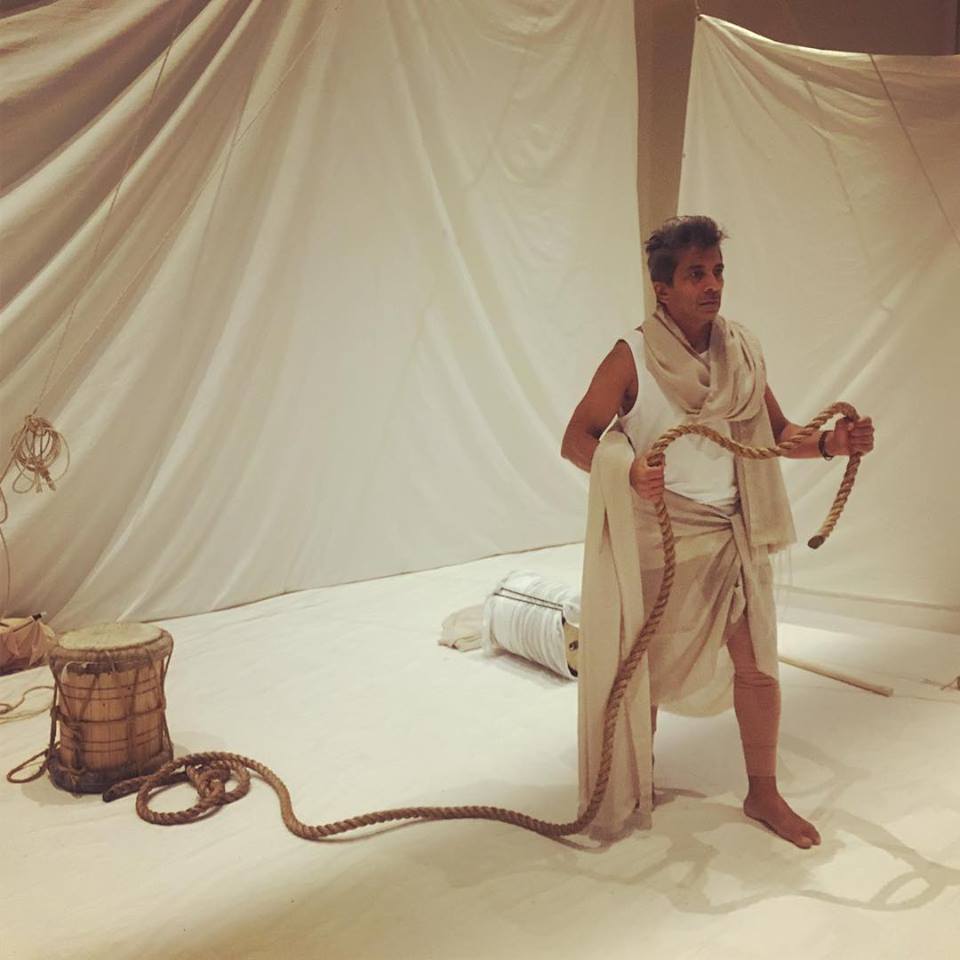 Sayadi plays all the characters, and he is especially compelling as the female characters (which is so rarely the case for a male actor). He grounds both women in the play in respect and finds such simple and nuanced ways to shift between the characters. The music, composed by Mohsen Sharifian and Habib Mefahboushehri and Sina Bathaie, complements and enriches the world that Sayadi has created, and also helps the storytelling along, by wordlessly portraying the strong emotions of the characters. Nick Bottomley, Mike Mader, Raeesa Lalani, and Sayadi work beautifully in tandem to create a stunning ambiance of the Person Gulf. The light and projections on the white set and costume pieces is magical in its ability to transport us both to physical places, like the beach, underwater, or under an evening sky full of stars, and also to mirror the emotions and journeys of the characters as well.