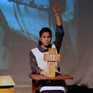 The work is a powerful ensemble piece featuring the talents of Smith, Jonathan Fisher, Semiah Smith, Montana Summers, and Julianne Blackbird. Smith and Fisher play the parents, themselves survivors of the Mush Hole, who were robbed of the nurturing care of their own parents, and so we see them struggle in their attempts to show love to one another and to their children. As parents they are forced by the Canadian government to surrender their children to the school, and as survivors they know what pain, trauma and abuse are waiting for them there. We see clearly and heartbreakingly the cycles of abuse inflicted on these individuals, and their community, ones that not only indoctrinate children, but also breed hatred and guilt, alienation and shame between family members, while also creating the perfect opportunity for violence and addiction after survivors have left the school. Semiah Smith, Montana Summers and Julianne Blackbird play the children of the next generation still attending the school. Like the victims of the Holocaust Residential School “students” were dehumanized to the point of being referred to by numbers instead of names. Semiah Smith and Montana Summers portray siblings who are not allowed any contact with one another, despite attending the same school. Summers does a tragic dance in the boiler room, inspired by a real survivor’s story of rape. As Santee Smith stressed in her opening remarks, there was no one at the school to protect these children, who ranged in age from two to sixteen years old. Julianne Blackbird’s character, Eleven, doesn’t have a name because it’s been lost to history. She dances a glorious freedom dance when she escapes, but, like so many of the Indigenous children who went missing, she dies, alone in the snow, unable to find her way home.