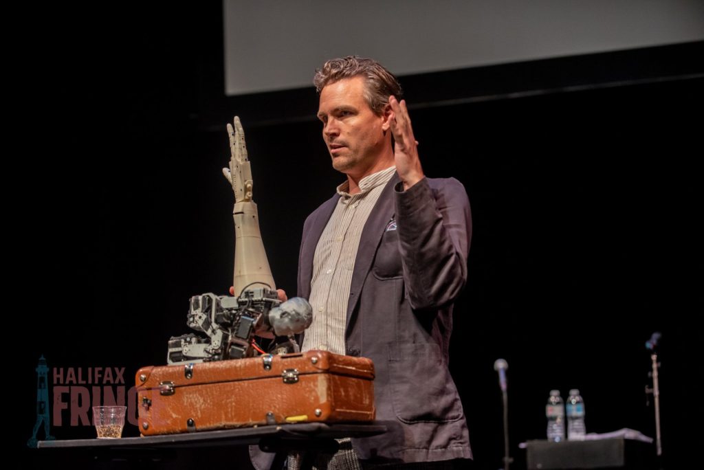 Charlie Caper- Robotricks is similar to El Diablo of the Cards in its level of proficiency in astonishing magic tricks, but the shows are very different in their overall concept, and I really recommend checking both of them out. Despite what you might assume by looking at their titles, El Diablo is more appropriate for younger children and Charlie Caper for older ones; Charlie Caper is a little bit scary! Both shows are perfect for adults. Charlie Caper is a Swedish magician/scientist who is exuberant about building AI robots, solving puzzles, cryptography, and sharing his passion for these things with others. He has created numerous AI robots who can do everything from passing butter to magic tricks of their own, and one robot works as his sidekick/assistant, facilitating onstage banter, and continually reminding Caper to put on his bowtie (which keeps disappearing from around his neck right in front of our eyes). The narrative of the show is really fun, suspenseful, with some genuine (and magical!) surprises, and a really fascinating message at the end about the future and our collective responsibility in how we use the technology we invent. This is a gem of a show, make sure you add it to your Must See Fringe List!
