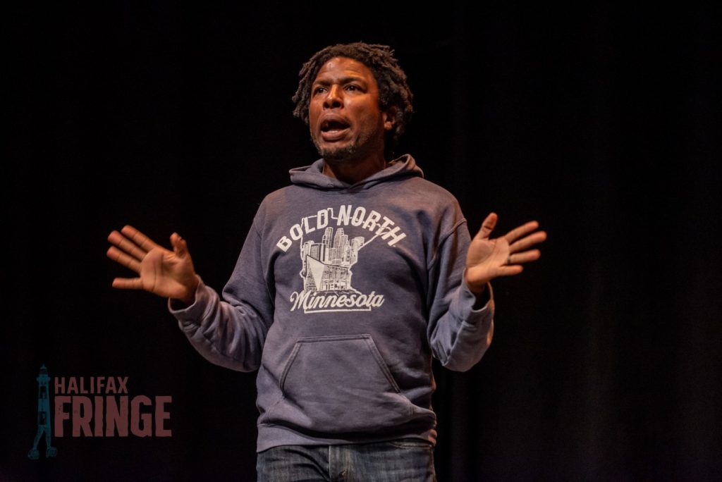 Les Kurkendaal’s show Walking While Black in Moscow was the last show I saw on Day 5, I sat in a small audience, mostly with other Fringe artists, and the show felt so intimate, like Kurkendaal was telling us a story of one of his most memorable vacations over a beverage at the pub. He has an extremely affable and endearing performance style, his storytelling feels relaxed, like he may not use exactly the same words to tell the story every night, but he’s responding to the particular energy in the room. And the energy in this room was both electric and friendly. As is evident from the show’s title Kurkendaal is black, he is a also gay, and this led to him having some unusual, awkward, and eye-opening experiences while travelling in Russia. In the same way that Kurkendaal says he was reminded of the privilege he experiences at home in California as a gay person by seeing how normalized gay folks are to their own oppression in Russia (casually warning each other not to get a cab from a gay bar as the likelihood of being gay bashed by the cab driver is high); as a white person, I had a similar experience listening to the casual way Kurkendaal explained the constant mico-aggressions he experienced there for being black. Conversely, there are many surprising and hopeful anecdotes in this story as well, and a lot of touristy tidbits about Moscow that I found interesting. The show is very open-hearted and I left the theatre feeling like I had made a new friend. This was an ideal way to end Day 5 of Halifax Fringe.
