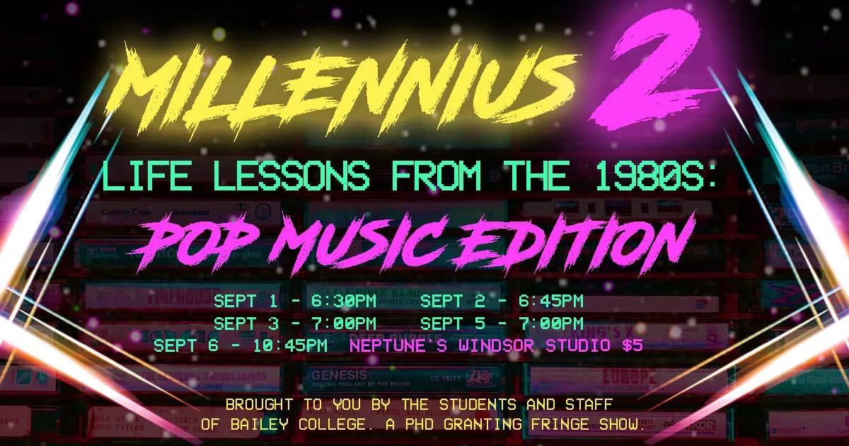 My first show of the Halifax Fringe Day 6 was Lions Den Theatre’s Millennius 2: Life Lessons from the 1980s at the Neptune Theatre Windsor Studio.