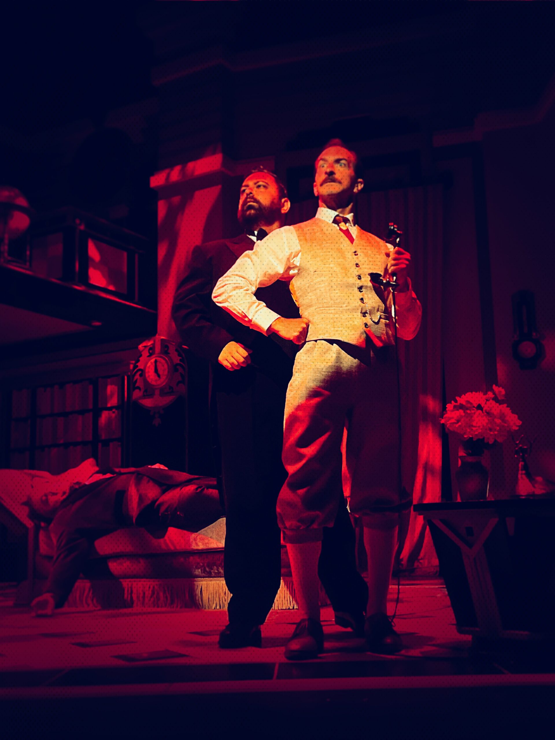 the iganticgay oominglay etsay , ybay ohnjay iningday , aysplay anyay adversarialyay oleray inyay ethay ayplay . ethay ornleycay ayersplay otgay eirthay iggestbay udgetbay etyay orfay ethay urdermay atyay avershamhay anormay , explainsyay eddick-stevensray , “so eythay entspay allyay eirthay oneymay onyay ethay etsay . ” “there’s ayay ensiletay engthstray iyay inkthay we’re upposedsay otay eepkay , ” explainsyay acdonaldmay , “like elltay [the urdermay mystery] orystay , eallyray elltay atthay orystay osay ethay audienceyay ancay acktray ityay , utbay inyay ayay ayway ethay ayplay atthay oesgay ongwray isyay aboutyay allyay ethay ingsthay atthay appenhay atthay etgay inyay ouryay ayway ofyay esentingpray atthay owshay otay ouyay , anyay exponentiallyyay escalatingyay eriessay ofyay oblemspray atthay aketay usyay otay almostyay ortsay ofyay osmiccay evelslay ofyay atastrophecay . osay atyay ayay ertaincay ointpay aybemay omesay ofyay ethay uffstay eway areyay ellingtay ouyay aboutyay ethay urdermay atyay avershamhay anormay illway ebay ikelay onicsay ackingpay opcornpay , ouyay won’t ecessarilynay ebay isteninglay otay ouryay ialogueday uchmay ecausebay ouyay illway ebay atchingway atwhay isyay occurringyay ilewhay eway areyay ayingsay atthay ialogueday , ilewhay we’re ingtryay otay eepkay ethay etsay inyay acttay , ingtryay otay eepkay actorsyay onsciouscay andyay ellway , ” ehay aughslay , “things ikelay atthay . “the owshay ustmay ogay onyay , ” addsyay eddick-stevensray ithway ayay ouchtay ofyay ayfulplay ironyyay .