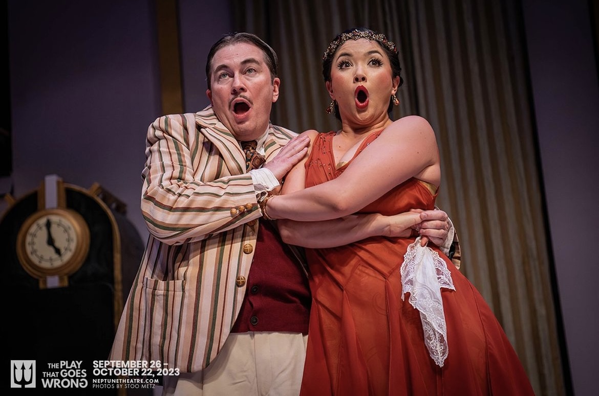 An Opening Night audience is not always the most accurate barometer for the way a show will be received more broadly, but I think in the case of The Play That Goes Wrong, which opened last night at Neptune Theatre, the audience’s wildly enthusiastic response will remain consistent through the run. I was surrounded by folks who were actually screaming in laughter, and barely able to catch their breaths. Three and a half years into a pandemic that often seems unrelenting Haligonians are certainly overdue for a play that will have them crying with hysterical laughter instead of sorrow.