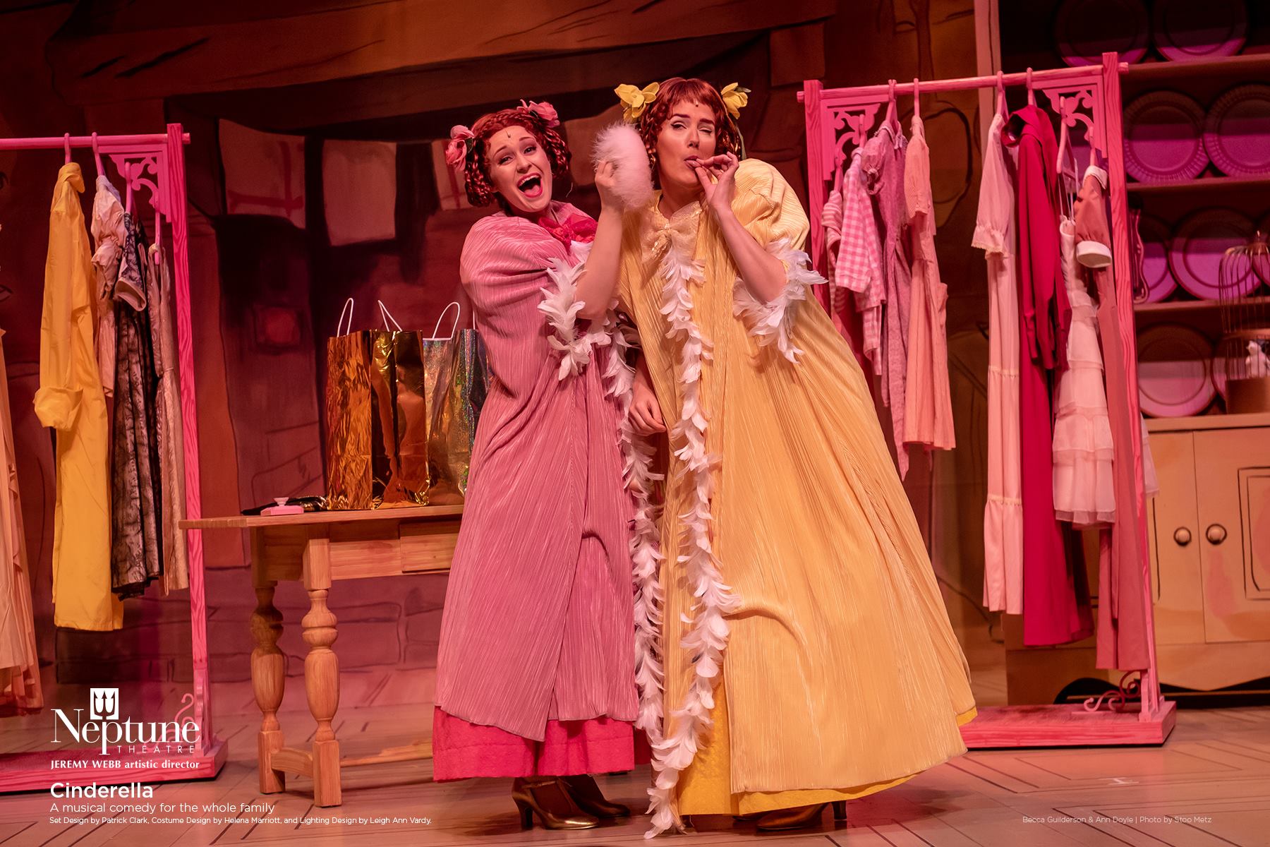 Neptune’s production of Cinderella incorporates many of these elements. In Webb’s version Cinderella, a typical Millennial, is qualified to work six different jobs, but still lives below the poverty line at home with her father, Big Jim, and her two self absorbed and materialistic stepsisters, Citronella and Deetah. It’s winter during the housing crisis and the family seems to have a mice infestation. Cinderella’s friend Boutons, who works at the palace, delivers an invitation for all the eligible young ladies of the household to attend Prince Charmin’s 30th Birthday Bash. Unfortunately, Cinderella doesn’t have anything appropriate to wear, so her father gently suggests that he accompany Citronella and Deetah to the party while she remains home. After all, Big Jim is much more anxious to see the stepsisters off on their own and married, rather than his sweet Cinders, whose company he really enjoys. Can Cinderella’s Fairy Godmother (Third Class) figure out how to grant her wish and get her to the ball in time to meet the Prince?