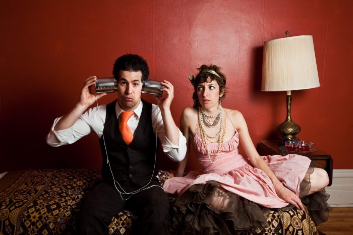 As Gwendolyn and Bartholomew respectively Pearlman and Di Gaetano immediately conspire with their audience to draw everyone into their world of wonder. With the help of their director, Gauthier, they strike the perfect balance between narrating and immersing themselves creatively in every ounce of the story they are telling, whether through dance, with flashlights, a tin can telephone or a red balloon, the imagery that is created onstage is always a perfect companion for the audience’s imagination. Together, Gwendolyn and Bartholomew stare at one another with wide-eyed happiness, a grin so big, Gwendolyn is nearly crying with the joy of it. They watch each other with such intent fascination, the audience is mesmerized and hang on to their every movement, the intense affinity between these two characters is nearly too much for them to handle so they struggle to catch their breaths. Gwendolyn and Bartholomew are utterly resplendent, larger than the world, and just as cosmically beautiful. Yet, ultimately, even these two rapturous creatures cannot remain immune to reality’s tumultuousness, and the ending of this play is astutely heartrending and powerfully tragic because our wish, that to remain so Magnificent and Spectacular were possible, is so ardent.