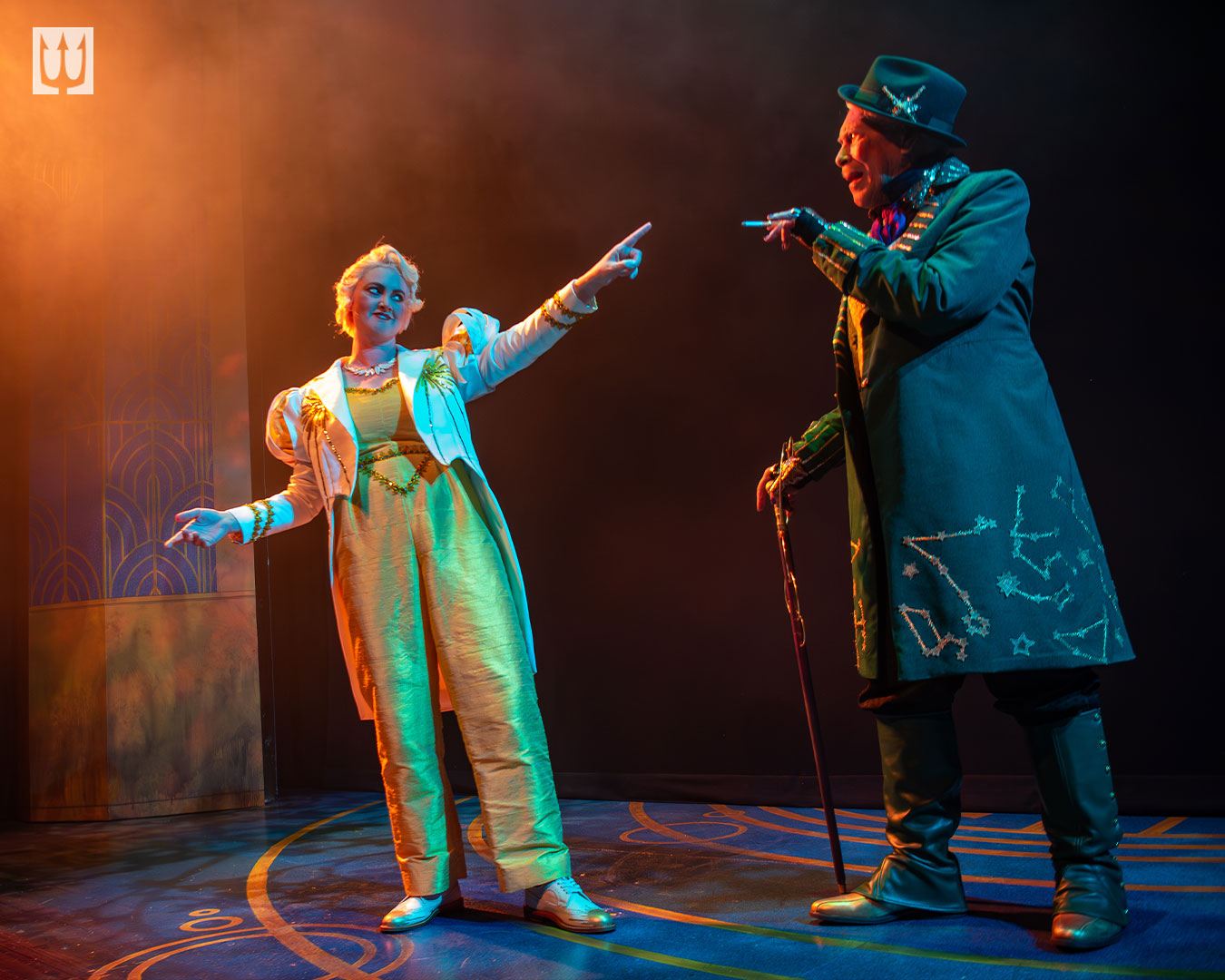 In the same way, of course, director Jeremy Webb finds all sorts of opportunities for unexpected moments of silliness and bits where you can see clearly the evolution throughout history from this specific play to melodrama to Saturday morning cartoons. The characters chase one another up and down a ladder, there are physical fights, there is very fun use of props, and of course, a play within a play that needs to be so bad that it is excellent. Jeremy Webb’s distinct sense of humour and his ability to imaginatively meld Shakespeare’s funny with Vaudeville/Panto/Bugs Bunny funny works really beautifully here.