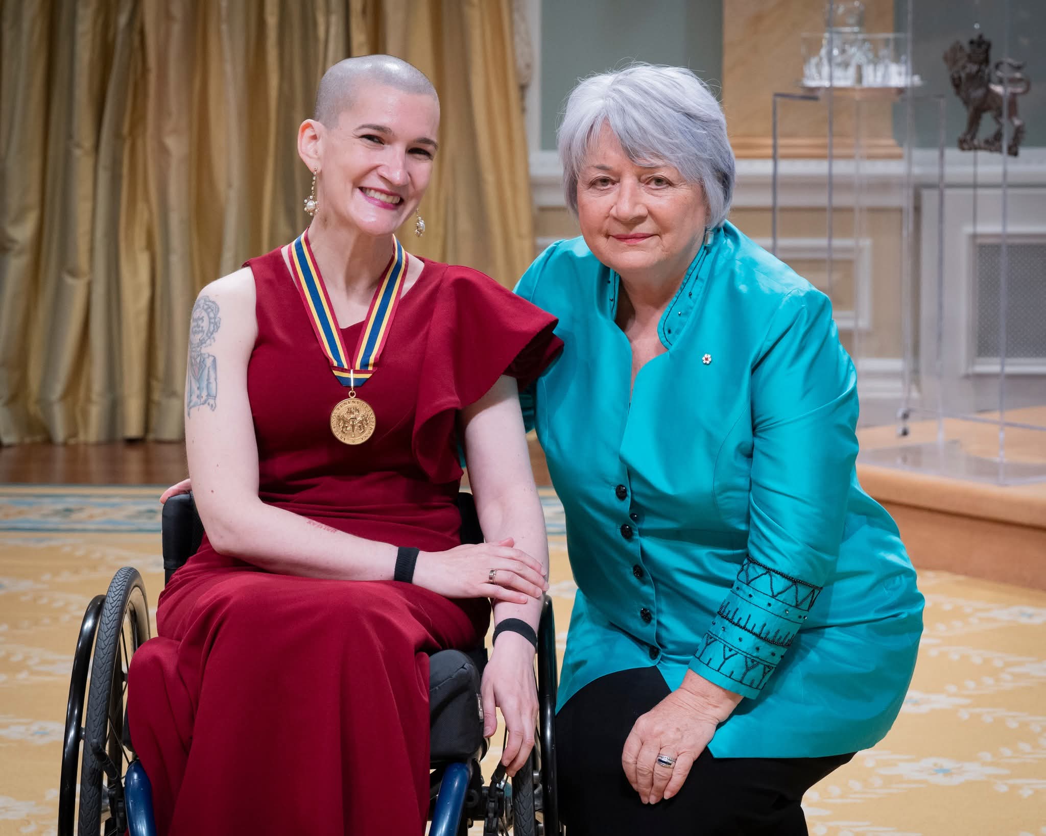 Hubbard’s chronic pain has worsened considerably since 2022, which has made it considerably more difficult for her to perform. She is currently working on a couple new projects, the Touch Project, she says will likely be one of her last performance pieces, and she hopes to do “CripTease Serves One More Piece,” which will be a drag performance. Hubbard applied for medical assistance in dying (MAID) in 2023 and was approved for it. She had her Living Funeral at the Spatz Theatre last September. Initially, she didn’t think she would be able to accept her Governor General Performing Arts Award in person, but a few weeks before the ceremony, with the support of the folks putting together the ceremony, she was able to go and relish in this moment herself.
