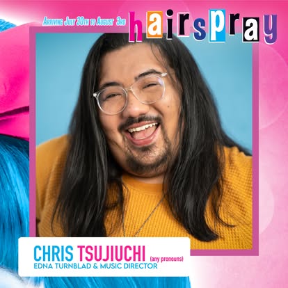 Winters has been singing and dancing since she was a young child, and did her first musical, Les Misérables at The Savoy Theatre in Glace Bay, when she was in her late teens. As a dancer Winters had the opportunity to dance to a number of different songs from Hairspray, and she was in the ensemble of a production of the Music of the Night production in Antigonish in 2019. This is her first time playing the lead in any musical. For Chris Tsujiuchi Hairspray was one of the first musicals he ever saw in New York City; he saw Bruce Vilanch play Edna. “It was super exciting and formative,” he says, “It was an amazing experience seeing it on Broadway. I remember it very vividly.” He also saw it in Toronto when Avery Saltzman was playing Edna, but he never imagined that one day he would be playing the role.