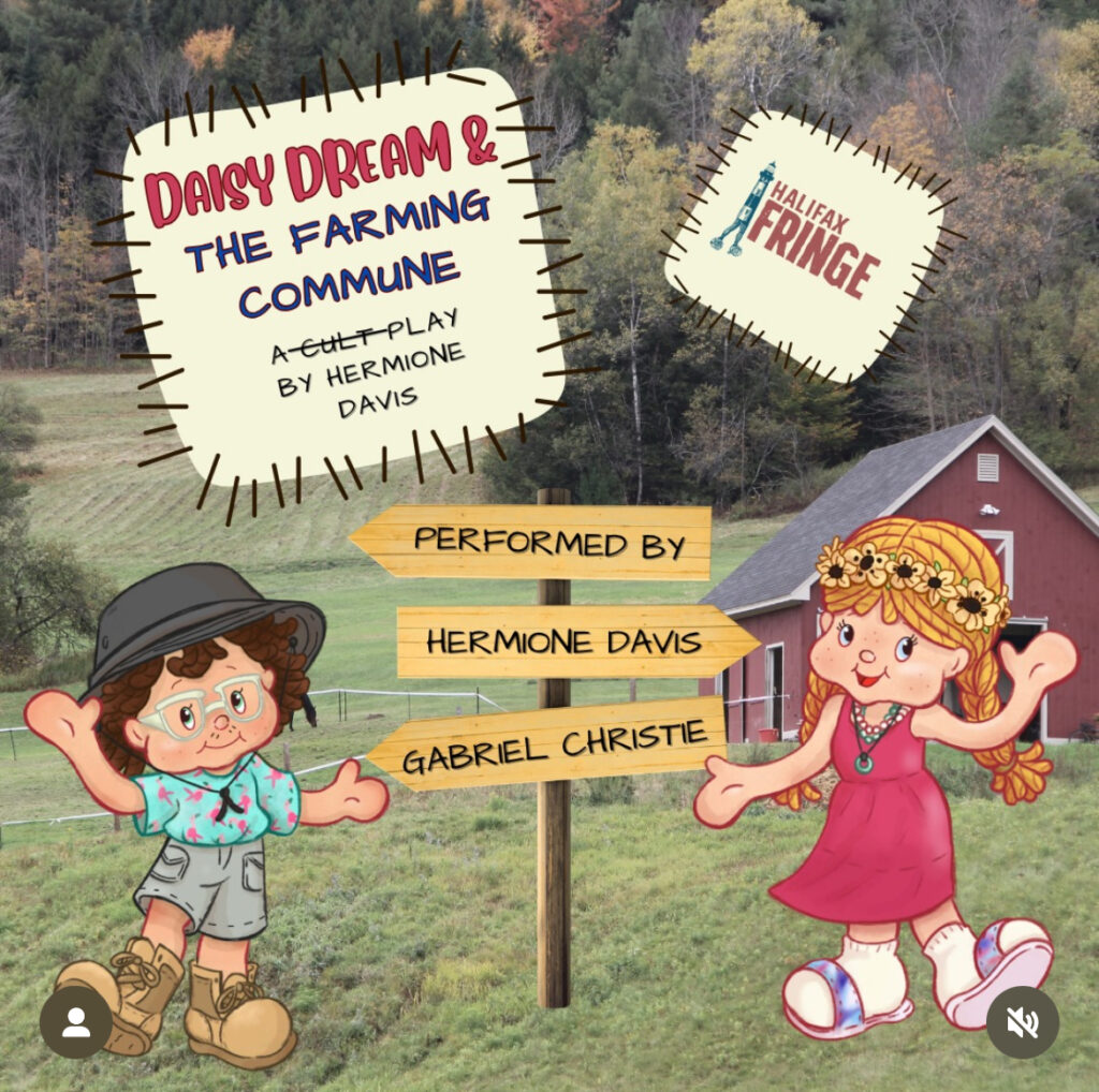 The day began in the Windsor Studio at Neptune Theatre for Daisy Dream and the Farming Commune written by Hermione Davis and performed by Davis with Gabriel Christie. The conceit of this show is that Daisy, played by Davis, has teamed up with her friend Fiddlehead to start a Queer Farming Commune, and she has invited all of us to a meeting to recruit us to join the ‘family.’ Yet, from the beginning we see that this is very much Daisy’s idea, and she is pretty particular about how she wants everything to go, and she is extremely idealistic and unwilling to settle for less than perfection for her new community. Fiddlehead is more pragmatic and the two start butting heads about their differing visions for the project.