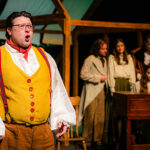 Most of the actors play duel characters- Kansas and Oz counterparts- so, along with being Auntie Em, Amy Reitsma also plays Glinda, the Good Witch of the North, who guides Dorothy with kindness, but also hints that there is more to her than just a bubbly personality. Kailin Glasgow plays the charming Scarecrow who first accompanies Dorothy on her quest, Andrew Prashad is wonderful at playing the often rusty Tinman, really rooting him in the reality that he used to be a man in love with a Munchkin maiden. Ian Gilmore plays the Cowardly Lion with a definite nod to Burt Lahr who originated the role in the film, but also finding many unique funny moments like swatting at feathers with his paws and using his tail as a microphone. Jeremiah Sparks’ commanding voice works so well as The Wizard of Oz, but I especially love the way he portrays Professor Marvel, the sort of confidence trickster Dorothy meets in Kansas just before the twister. We see his kind concern for Dorothy break through whatever opportunism he might have had on his agenda when he first saw her, and he cleverly hatches a plan in attempt to help her. This is then, of course, mirrored beautifully later once Toto begins sniffing around behind the famed curtain.