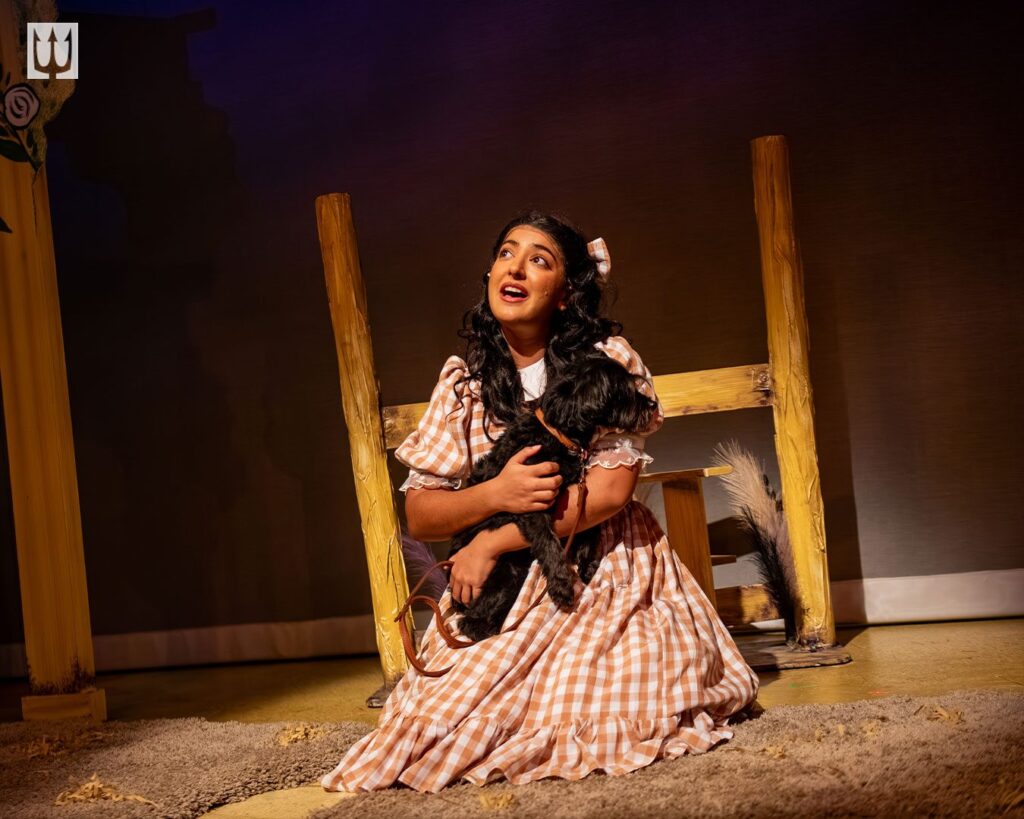 In the Neptune version we begin very much rooted in genuine fear and sorrow, as Amy Reitsma, who plays Dorothy’s Aunt Em, and Garry Williams, who plays Dorothy’s Uncle Henry, are both quite devastating as they reluctantly hand adorable little Toto (played by professional scene stealer Shadow) over to Miss Gulch (Emma Slipp), and Dorothy, played by Henna Matharu, mirroring, I think, the audience’s response, is unconsolable. I found myself surprised by how emotionally affected I was at this scene, one that I have seen at least fifty times before, but I really felt the depth of the grief at being forced to hand over your dog to an unknown fate- perhaps never to see him again. This prompts Dorothy to run, and sets the rest of the story in motion nicely.