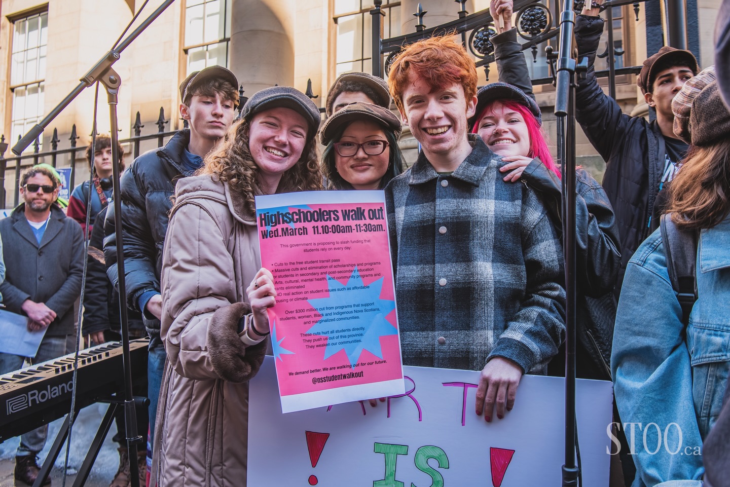 Neptune Theatre School’s Youth Performance Company also attended the rally and they sang the very apt “Seize the Day” from their production of Disney’s Newsies (2012), which closed Sunday. Newsies is loosely based on the 1899 youth-led newsboys’ strike which forced Joseph Pulitzer and William Randolph Hearst to change the way they compensated the boys for their labour. “Seize the Day” has become the musical’s most famous anthem. The song is about all the boys, from every neighbourhood in New York, standing strong and united together and not allowing the capitalistic crooks to pit them against each other or break them apart and that “proud and defiant [they]’ll slay the giant…” It could not have been more perfectly tailored for this moment. These young people know first hand the transformational and restorative power of having access to art. Their enthusiasm, eloquence, and feisty energetic spirit was buoying for folks like me who may feel dispirited that they have been standing on these front lines for decades and to no avail. I found watching the YPCo advocating for themselves in such a joyful way extremely poignant.