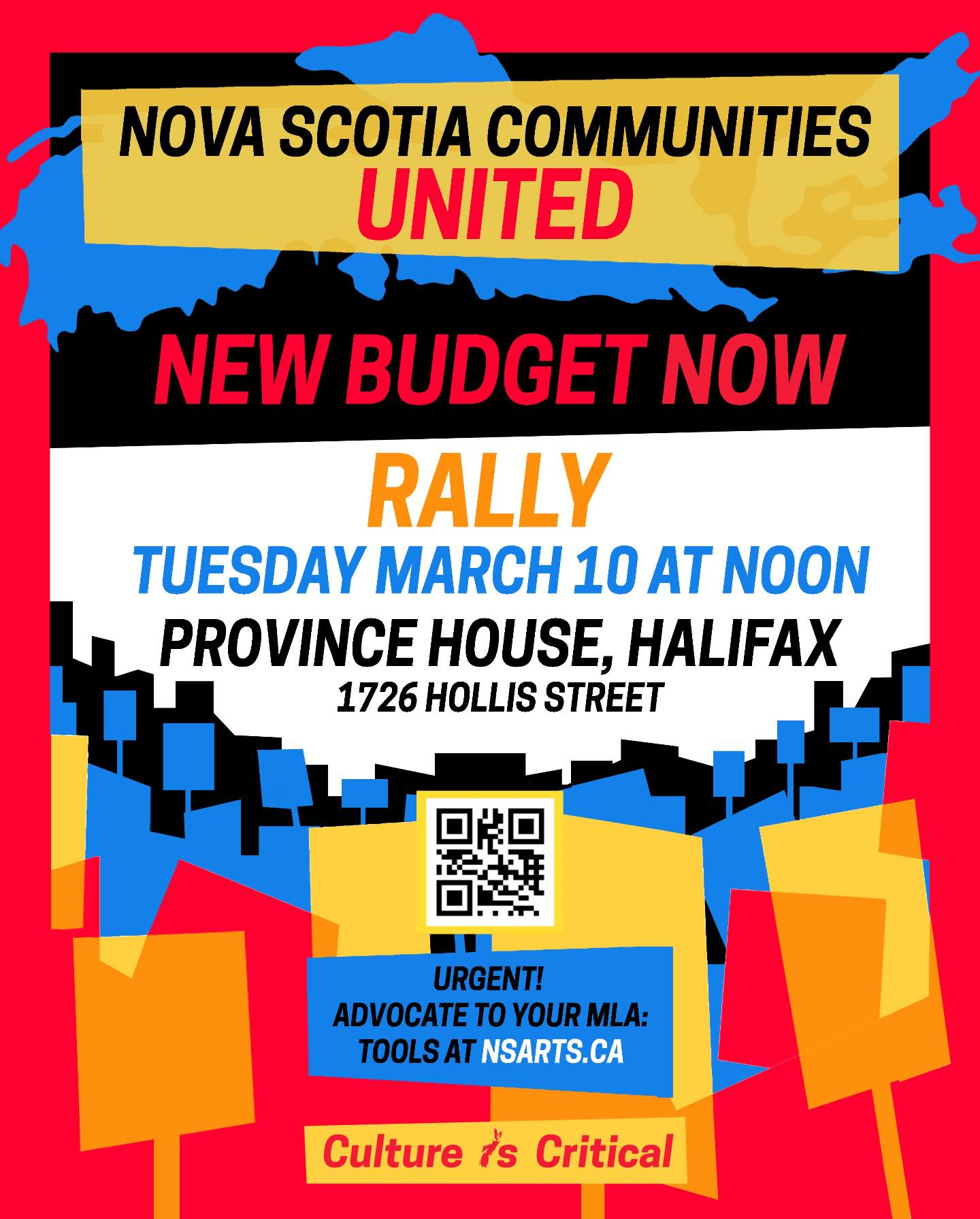This time though, Nova Scotians will not be divided. Last Wednesday thousands of regular Nova Scotians rallied at Province House for Arts and Culture to be respected in the budget. The day before hundreds more came out in solidarity with the Mi’kmaq who are having their Aboriginal Sport funding cut, as well as cuts to Mi’kmaw Native Friendship Centre, and to Treaty Day Awards and Education, all of which are essential foundational aspects of this province. Tomorrow, March 10th there is a rally for everyone affected by the budget to come and stand together again: shoulder to shoulder to shoulder to find kinship and solidarity, strength and resilience and hope together. This is what all these politicians like Houston want to keep us from feeling: hope and optimism and a belief that we don’t have to sacrifice ourselves as so many of our ancestors did for a tiny slice of the pie, we really can make an entirely better world all together for all of us.